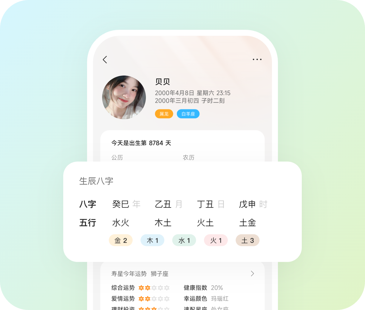 记录完整的出生年、月、日、时间,可以为您推算出八字和五行信息